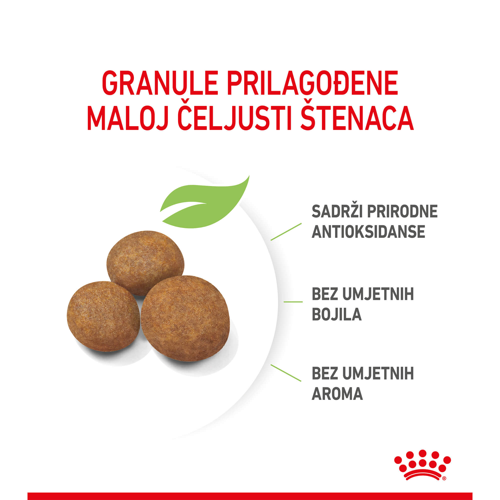 Granule ROYAL CANIN® Maxi Puppy suhe hrane također su posebno prilagođene jedinstvenim potrebama velikih štenaca. Njihova veličina i oblik pomažu regulirati brzinu kojom vaše štene jede te pridonose osjećaju sitosti. Također pomažu i u održavanju zdravlja zubi, zahvaljujući mehaničkom učinku četkanja dok vaše štene žvače.