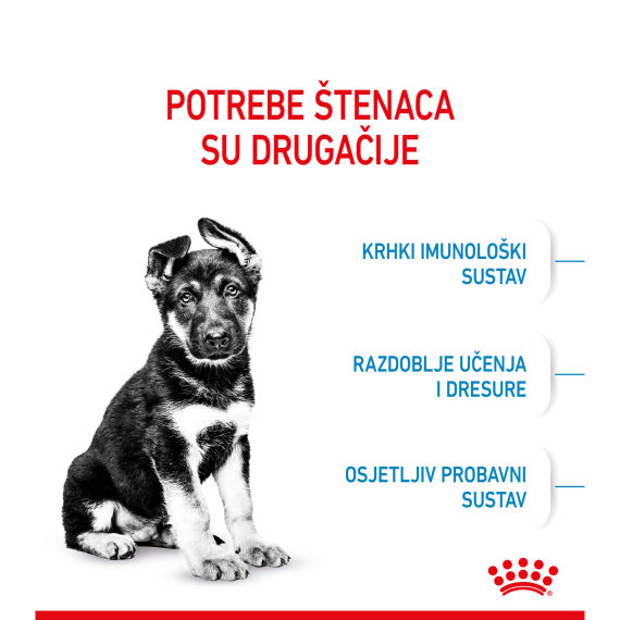 ROYAL CANIN® Maxi Puppy proizvod je posebno formuliran kako bi se zadovoljile prehrambene potrebe štenaca velikih pasmina. Ova formula je prikladna za štence u dobi od 2 do 15 mjeseci, očekivane odrasle težine od 26 do 44 kg.